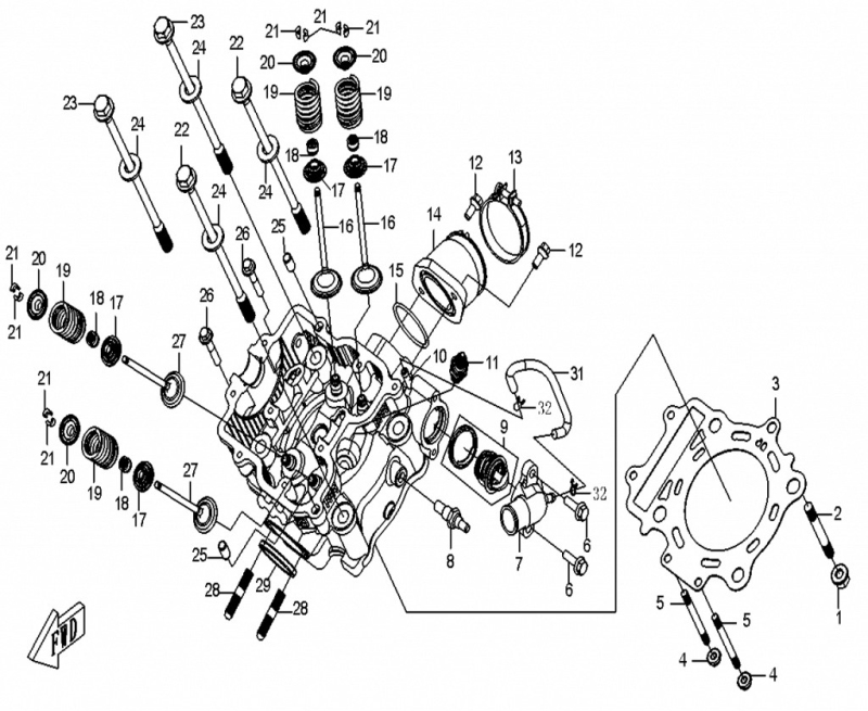 Hlava 73 mm EURO5 bez ventilů pro Kymco a čínský čtyřtaktní motor 125 ccm GY7, GY6-B, BN157QMJ