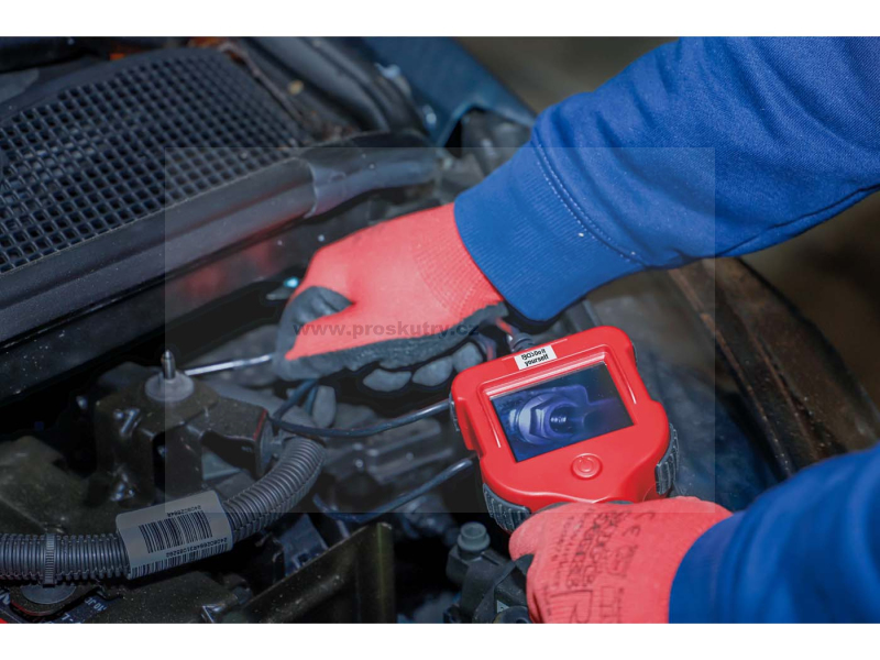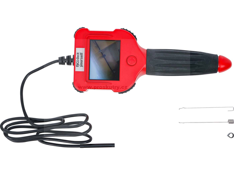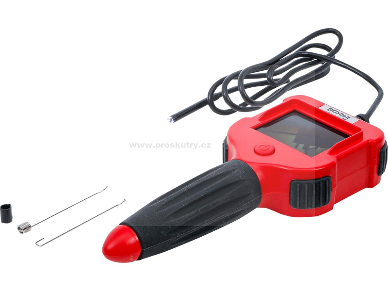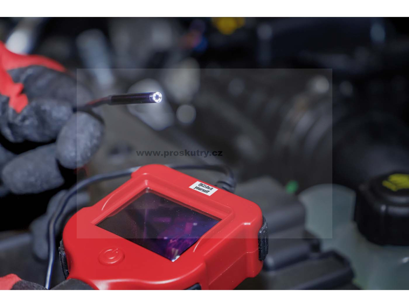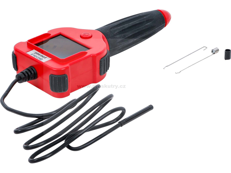 Tento přenosný endoskopický inspekční systém napájený bateriemi je určen pro vizuální kontrolu těžko přístupných míst a dutin bez nutnosti demontáže. Je vybaven barevnou kamerou s kompaktní hlavou o průměru 5,5 mm, která je umístěna na flexibilním husím krku o délce 1 m. Kamera je osvětlena šesti integrovanými LED diodami, které zajišťují dobrou viditelnost i v úplné tmě. Živý obraz lze sledovat přímo na integrovaném 2,4" barevném TFT displeji, což umožňuje okamžitou diagnostiku na pracovišti bez externích zařízení. Díky napájení z baterií je endoskop plně mobilní a ideální pro autoservisy, motocyklové dílny, průmyslovou údržbu i domácí použití. Součástí balení je praktické příslušenství – magnet a háček pro manipulaci s drobnými předměty. Technické údaje: Displej: 61 mm (2,4") barevný TFT Rozlišení displeje: 240 × 320 px Průměr hlavy kamery: 5,5 mm Zaostření kamery: 3–10 cm Osvětlení: 6× LED Třída ochrany: IP67 Délka flexibilního krku: 1000 mm Napájení: 4× AA 1,5 V baterie (nejsou součástí balení) Spolehlivý nástroj pro rychlou a přesnou inspekci motorů, potrubí, dutin a konstrukčních prvků.