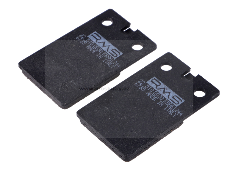 Organické brzdové destičky značky RMS typu ECE R90, vhodné pro Zündapp K 80 typ 540, KS 80 Touring typ 530 s kotoučovými brzdami, a také pro Malaguti F10, F12 a RST.