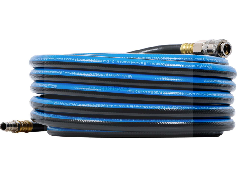Tato 10 metrů dlouhá hadice na stlačený vzduch je již vybavena rychlospojkami. Díky svým materiálovým vlastnostem je hadice odolná vůči olejům a kyselinám, což ji činí obzvláště trvanlivou.