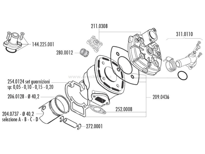 Hlava válce Polini Evolution 50cc pro Piaggio LC, Peugeot LC horizontální