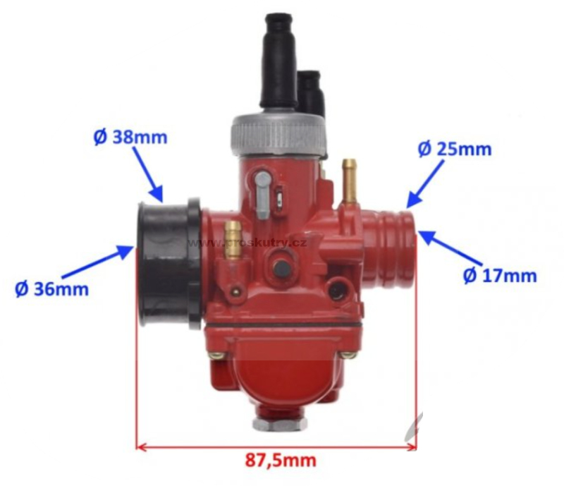 Kvalitní karburátor 17,5 mm určený pro dvoutaktní (2T) motory o objemu 50–100 cm³. Ideální jako cenově dostupná náhrada za karburátor Dellorto PHBG, vhodná pro běžné silniční i lehce upravené motory.