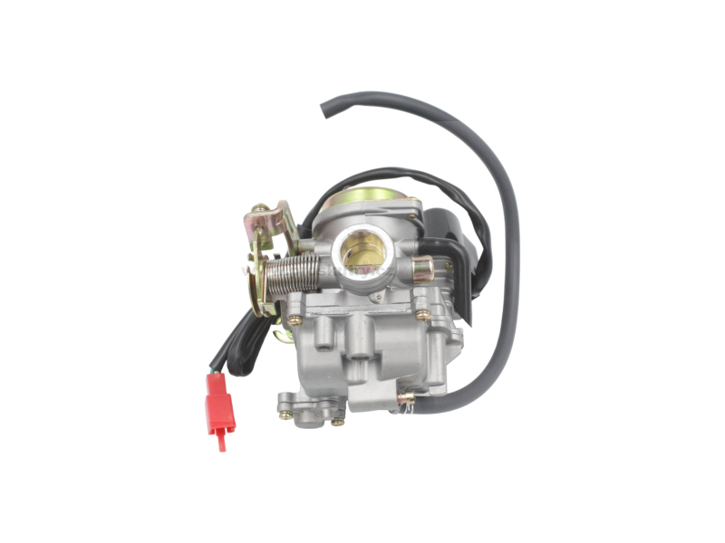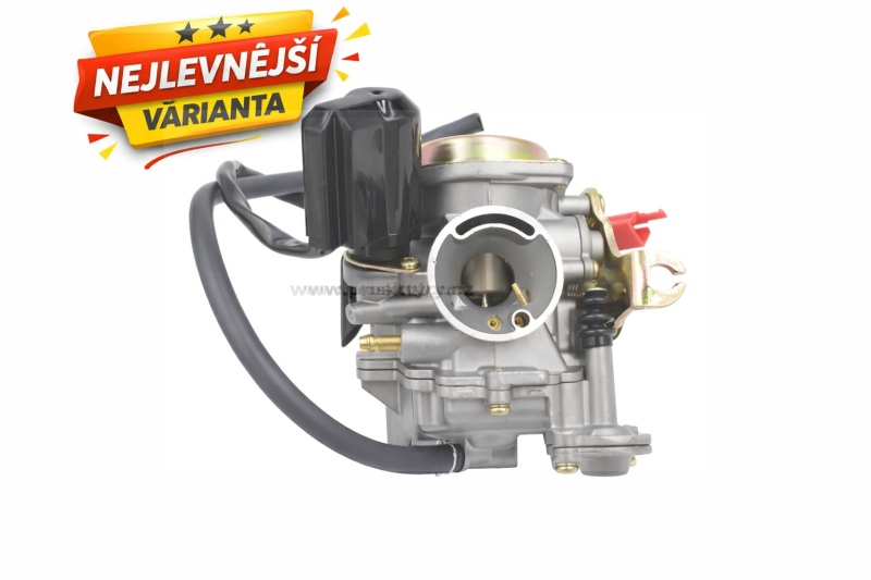 Kompletní karburátor Power Force určený pro čtyřtaktní motory GY6 o objemu 50–80 ccm. Karburátor je vybaven automatickým sytičem, který usnadňuje startování studeného motoru a zajišťuje stabilní chod při zahřívání.