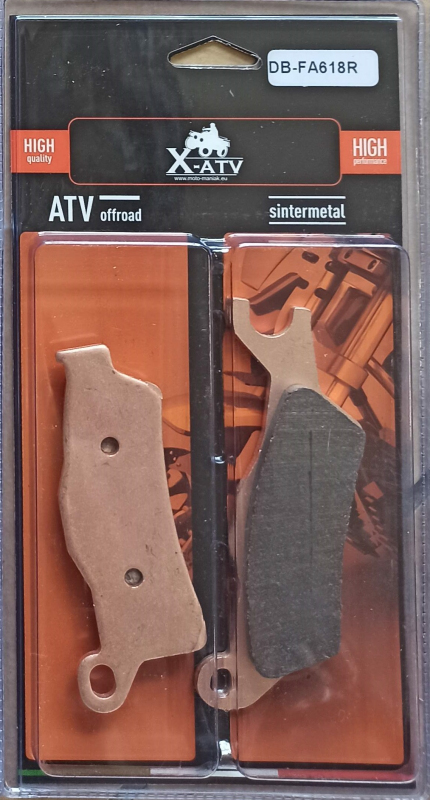 Brzdové destičky Sintermetal R-DB v zlaté barvě od firmy X-ATV jsou určeny pro modely Can-Am Outlander a Renegade 800 a 1000 (2012–2015). Díky speciálnímu složení slinutého obložení poskytují vyšší brzdný účinek, stabilní výkon i při větším zatížení a delší životnost. Současně dochází k menšímu opotřebení brzdových kotoučů.