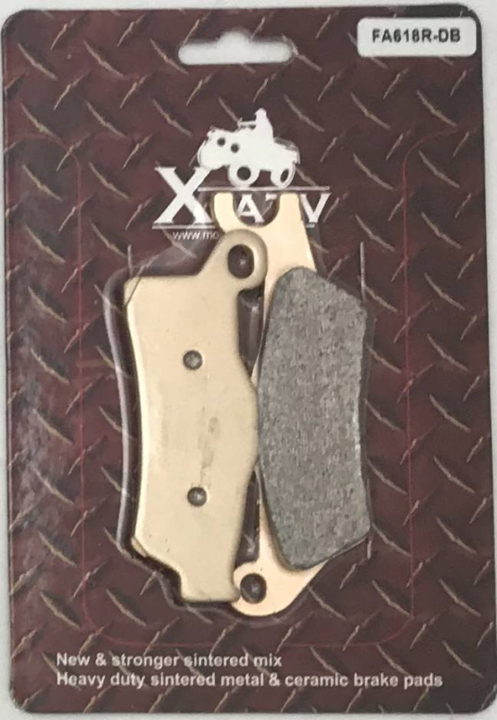 Vysoce kvalitní brzdové destičky Sintermetal R-DB zlaté barvy od firmy X-ATV, určené pro čtyřkolky Can-Am Outlander a Renegade 800–1000 (2012–2015). Destičky mají jedinečné složení slinutého obložení, které zajišťuje lepší brzdění, delší životnost a menší opotřebení brzdových kotoučů.