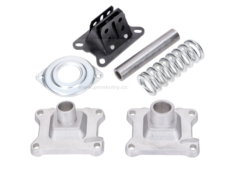 Kompletní skříň motoru včetně dvou různých sacích potrubí (upínací příruby) volitelně pro tuhé karburátory o průměru 12 mm až 21 mm. Skříň motoru je vhodná pro vozy Peugeot 103 MVL 50cc, Peugeot 103 RCX 50cc, Peugeot 103 SP 50cc, Peugeot 103 SPX 50cc, Peugeot 103 VOGUE 50cc a Peugeot MVL M 50cc.