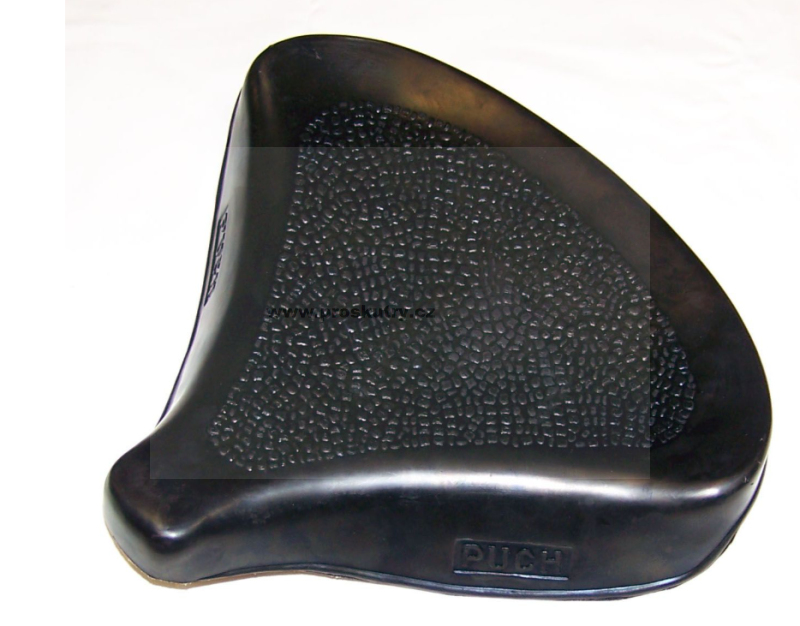 Jednodílná gumová skořepina sedáku s pevnou textilní vložkou.