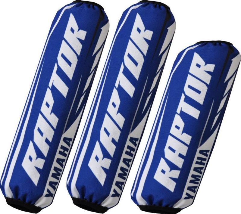Voděodolné textilní kryty tlumičů (sada 3 kusy) pro Yamaha Raptor 700 – modrá barva, suchý zip pro snadnou montáž.