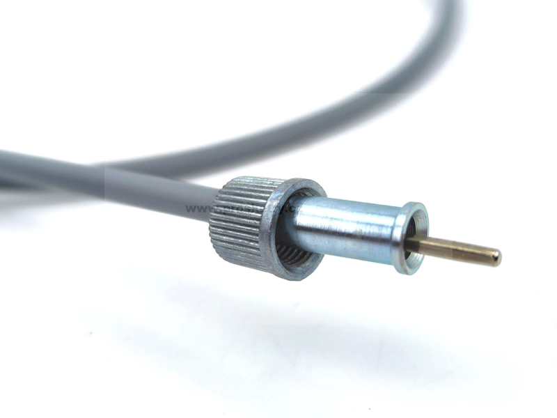 Kabel tachometru v šedé barvě s plastovými šroubovacími spoji, vhodný pro Kreidler Florett, Zündapp, Hercules, Miele, DKW, NSU a další.
