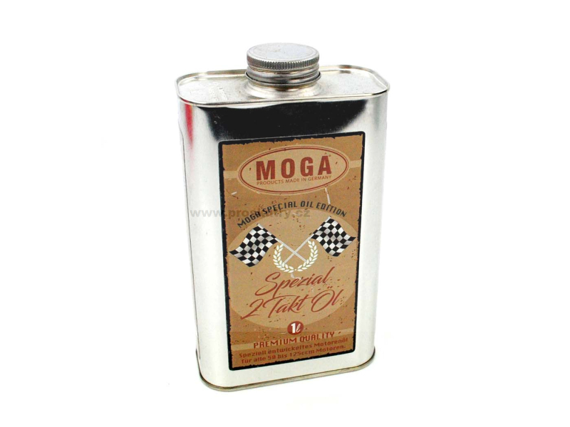 1l speciální polosyntetický motorový olej MOGA pro dvoutaktní motory v limitované edici plechovky s motivem 50./60. let. Vyrobeno v Německu. Vhodný pro všechny dvoutaktní motory o objemu 50–125 ccm, chlazené vzduchem i vodou, pro oddělené i směsné mazání. Nabízí vynikající ochranu proti opotřebení, prakticky beze zbytkového spalování a snižuje usazeniny.
