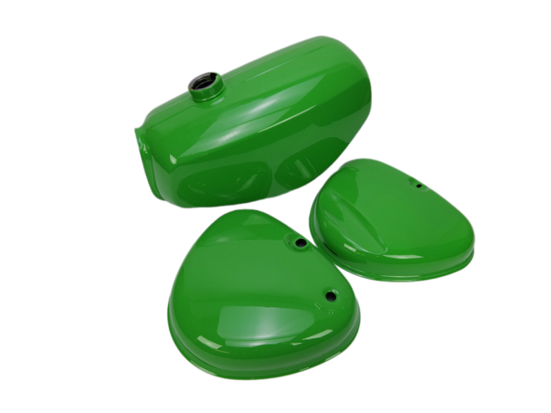 Nádrž i víka schránek jsou vyrobeny z kvalitního materiálu a opatřeny zelenou povrchovou úpravou, která odpovídá originálnímu vzhledu modelu Enduro. Precizní zpracování zajišťuje jednoduchou montáž a dobré usazení na rám motocyklu.