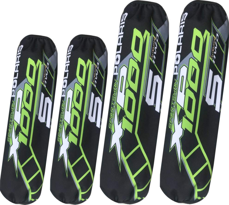 Textilní ochranné kryty tlumičů určené pro čtyřkolku Polaris Sportsman 1000 S. Slouží k ochraně tlumičů a pístnic před blátem, vodou, pískem a nečistotami, čímž výrazně prodlužují jejich životnost a udržují podvozek v lepším technickém stavu.