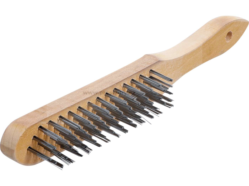 Pětiřadý ocelový drátěný kartáč s dřevěnou rukojetí