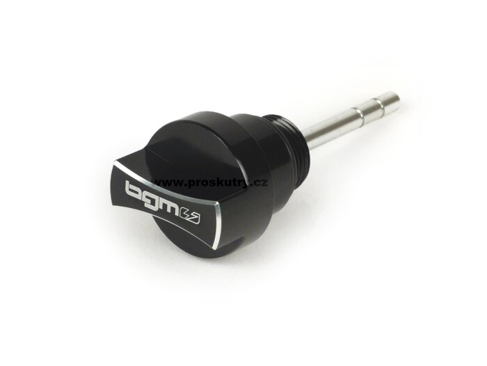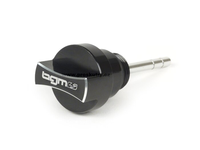 Plnicí šroub oleje s měrkou BGM PRO, motorový olej Piaggio Leader/Quasar Vespa ET4, LX, LXV, S, GT, GTS, GTV, GTL 125-300ccm černý elox