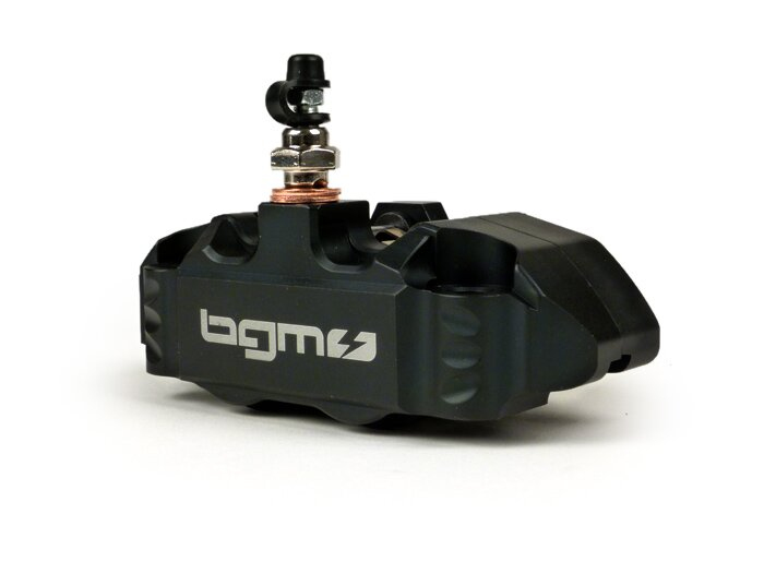 Přední brzdový třmen BGM PRO, 4pístkový, černý radiální úchyt pro PX, LML Star, Stella, Grimeca NT, klasická Vespa PX, T5 125cc, PK XL