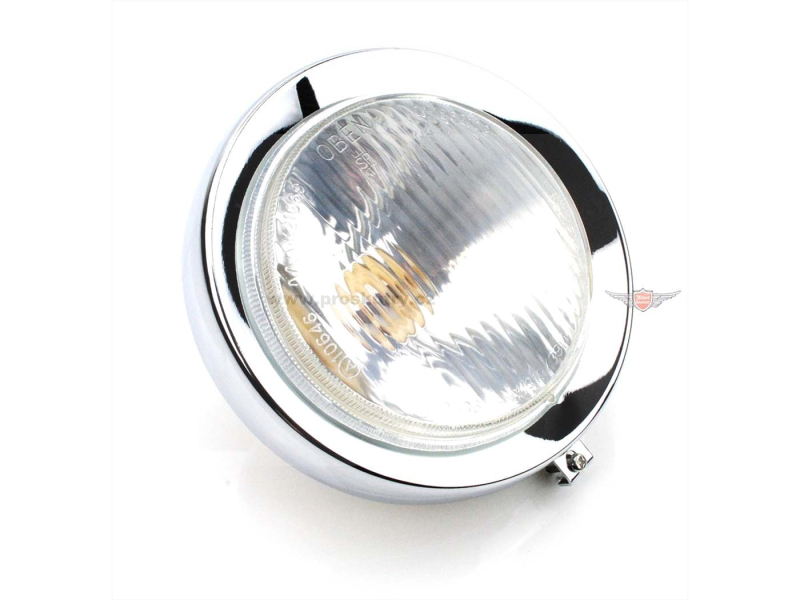 Vložka světlometu s chromovaným kroužkem pro světlomety ZKW od roku 1975 do 1976. Žárovka není součástí balení. Je vyžadována žárovka BA20D Bilux.