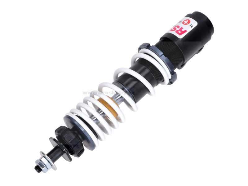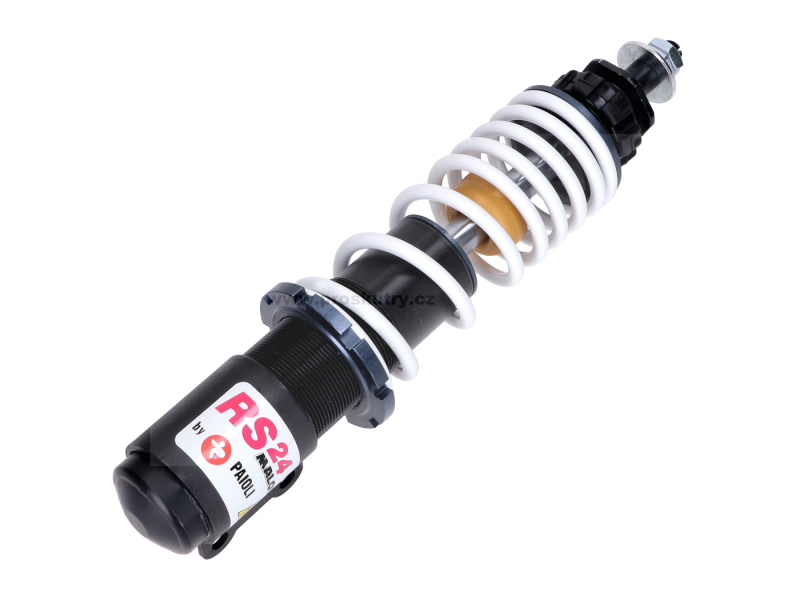 Přední sportovní tlumič Malossi RS24 o montážní délce 205 mm, určený pro skútry značky Piaggio / Vespa