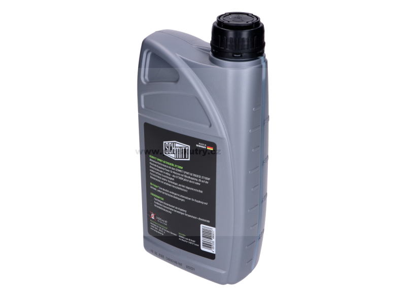 Schmitt Racing Oil STT80W je převodový olej na minerální bázi. Racing Oil STT80W je tou správnou volbou pro váš moped nebo moped s mokrou spojkou! Ať už se jedná o závody nebo každodenní použití, tento olej splňuje všechny požadavky. Testován v nejnáročnějších podmínkách v motokrosu, pitbiku, MX a Simson Enduro. Schmitt Racing Oil STT80W je vhodný i pro převodovky klasických vozů, Vesp a mopedů.