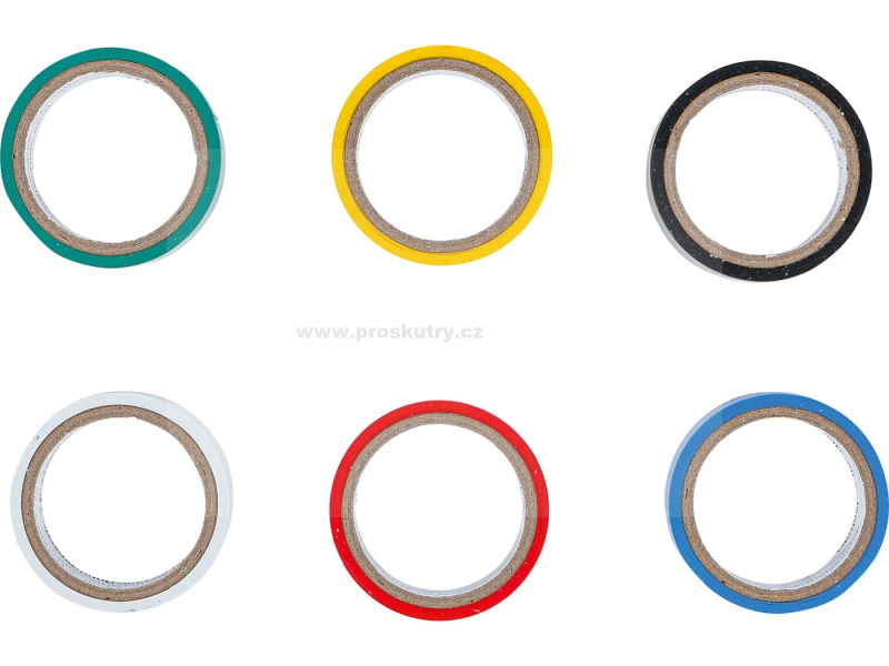Sada 6 PVC izolačních pásek v různých barvách (žlutá, červená, modrá, zelená, černá, bílá)