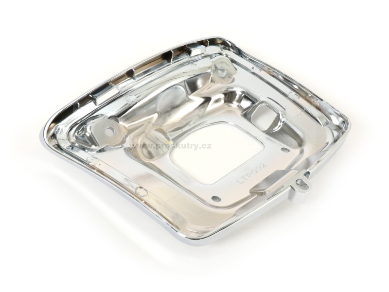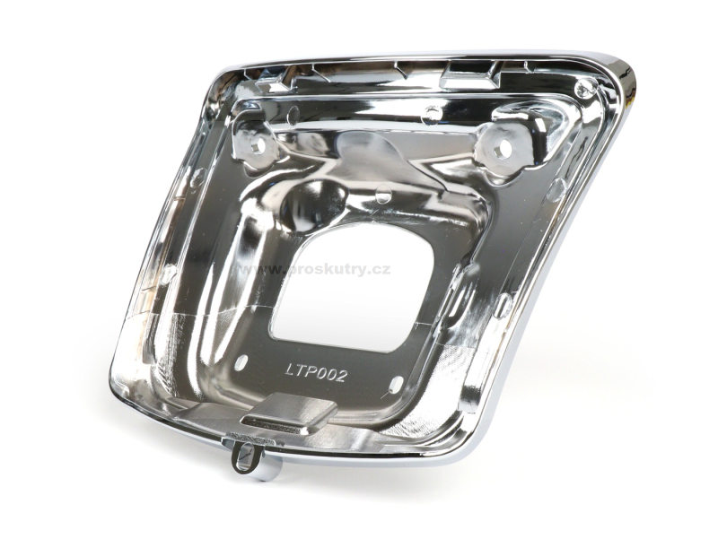 Chromovaný rámeček pro zadní světlo Moto Nostra umožňující přechod na nový typ světla (od roku 2014) pro skútry Vespa GTS, GT a GTV.