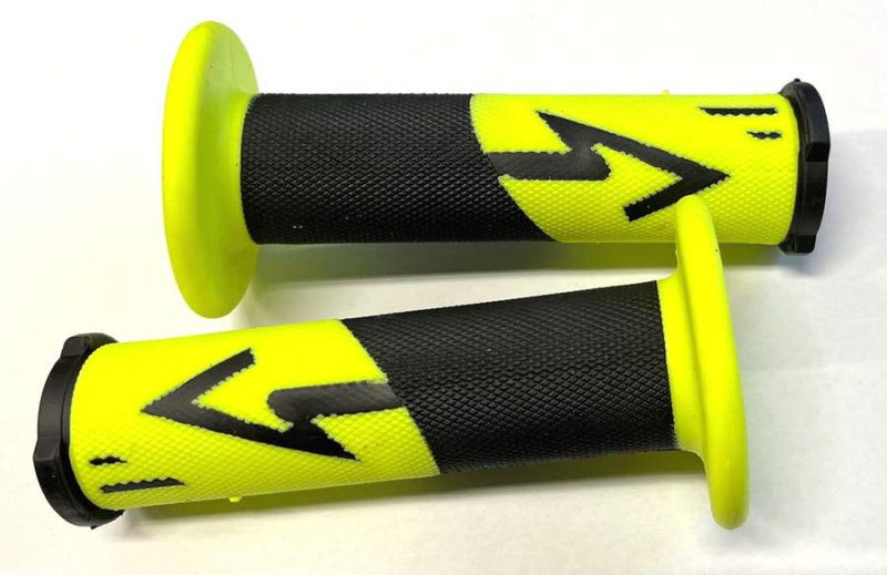 Žluté manetky GH005 pro řídítka o průměru 22 mm — protiskluzová guma, lepší úchop a komfort při jízdě.