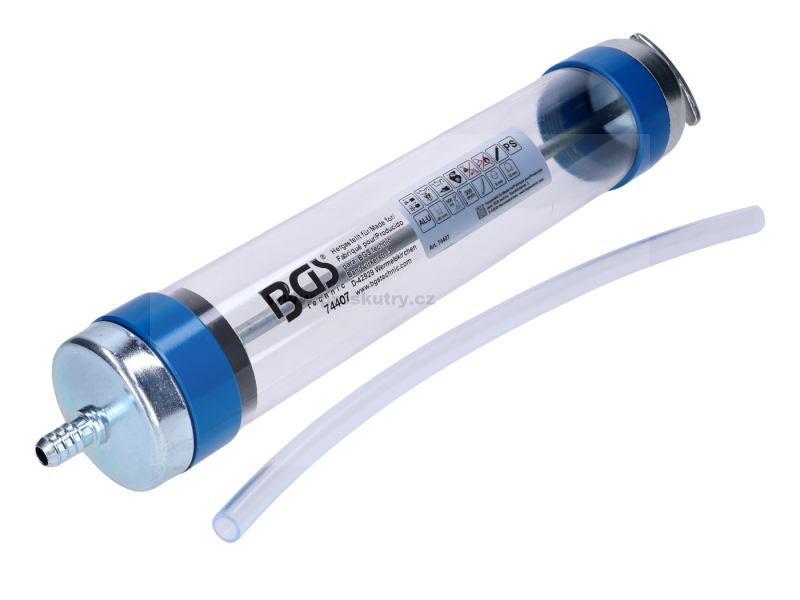 Univerzální ruční sací a přečerpávací pumpa o objemu 500 ml je praktický nástroj pro odsávání a přečerpávání kapalin při servisních a údržbářských pracích. Hodí se například pro manipulaci s olejem, palivem, brzdovou kapalinou nebo chladicí kapalinou.