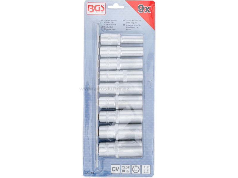 Sada dlouhých 9dílných metrických nástrčných klíčů 1/2 palce 10-24 mm