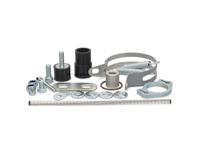 Náhradní montážní držák pro výfuk Voca Cross Rookie CE 50-70cc. Kompletní se všemi pružinami, podložkami, pouzdry, šrouby, silentbloky a podložkami.