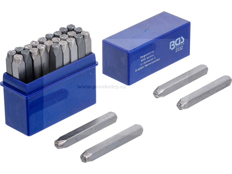 Sada razítek BGS je ideální pro trvalé značení kovů, plastů, kůže a dalších materiálů.