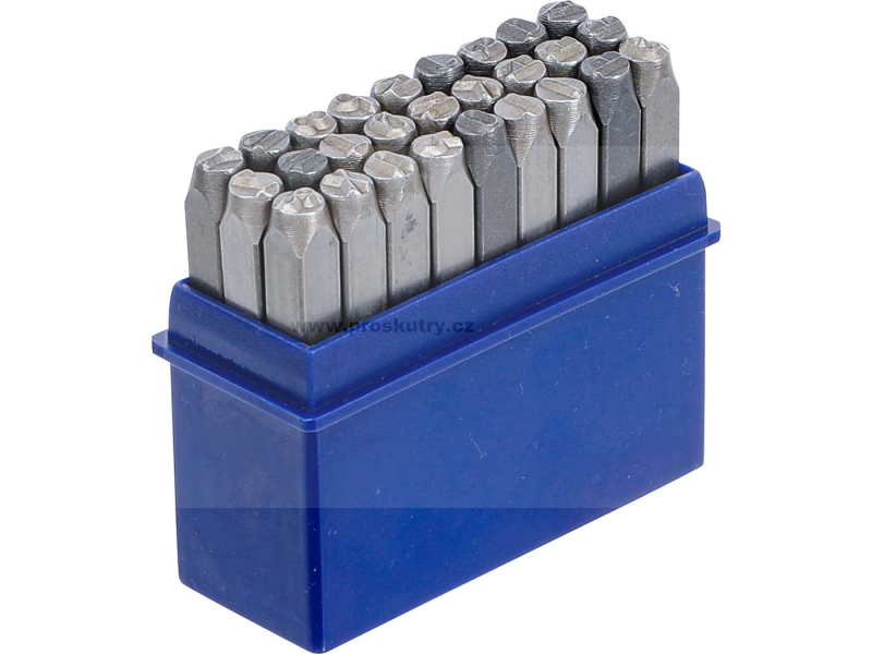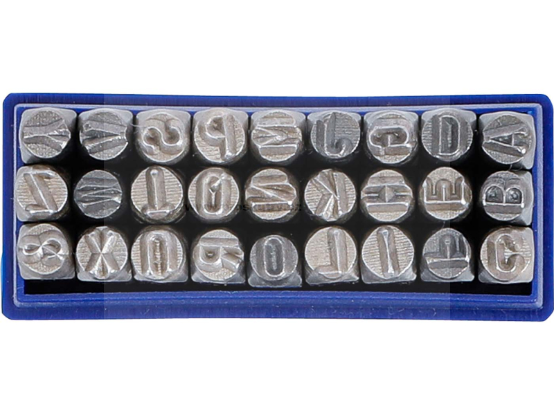 S výškou písmen 5 mm a písmeny dle DIN 1451 zajišťuje 27dílná sada čisté a čitelné značení – ideální pro dílny, kovoobráběče a hobbysty.