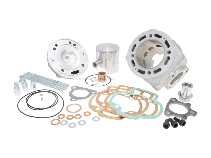 Vhodná pro skútry Piaggio, Gilera, Aprilia a Derbi s vodou chlazenými dvoutaktními motory Piaggio (LC). Tato kompletní sada obsahuje hlavu válců a potřebný montážní materiál. Válec je dodáván také s několika základními těsněními pro seřízení těsnicího pásu a 13mm ložiskem pístního čepu.