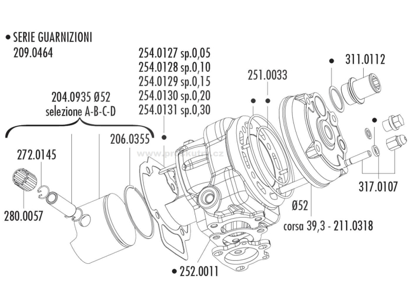 Poznámka: Tuto sadu válce lze instalovat pouze ve spojení s klikovou hřídelí Evolution 210.0020. Doporučuje se větší karburátor a závodní výfukový systém.