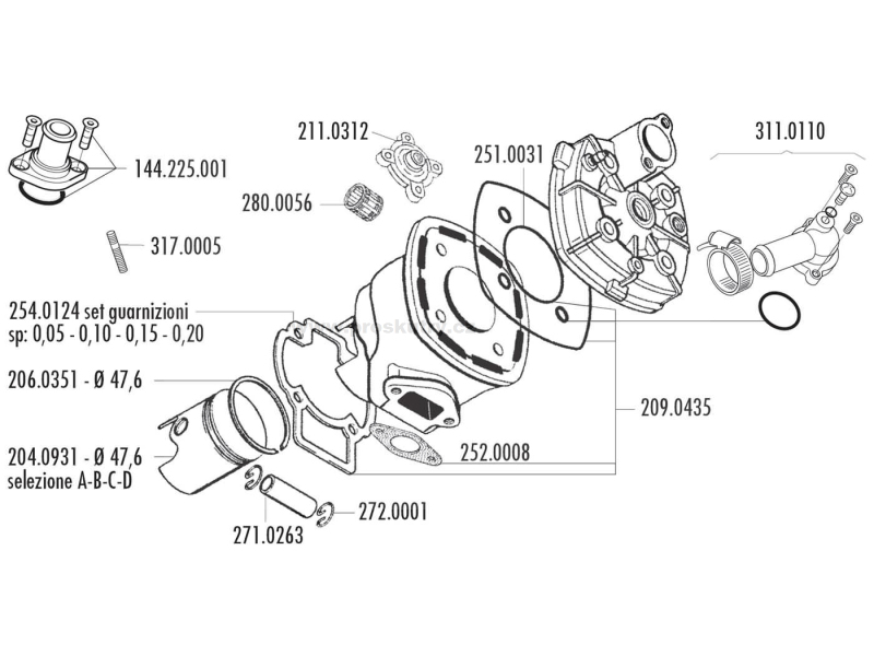 Sada válce Polini Aluminium Racing Evolution 70cc 47,6mm pro Piaggio LC