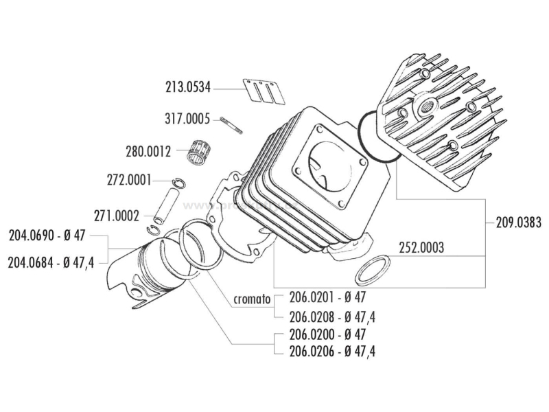 Sada válce Polini Sport 70ccm 12mm pro CPI, Keeway Euro 2, rovná