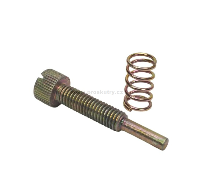 Šroub dorazu šoupátka s pružinou pro karburátor JIKOV