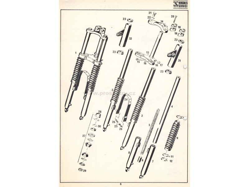 Teleskopická vidlice Pränafa s pružinami 440 mm 21,50 mm černá pro Hercules Prima 5S, SX, 6, Jogging, Optima 3, 3S