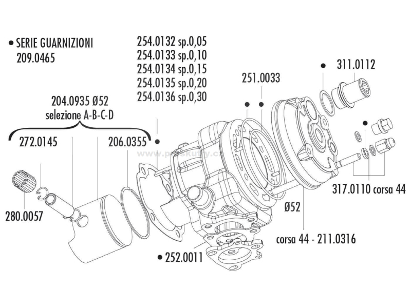 Těsnění válce Polini Big Evolution 0,20 mm pro Minarelli horizontální LC