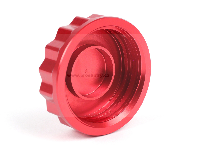 CNC obráběné víčko palivové nádrže v elegantním červeném provedení