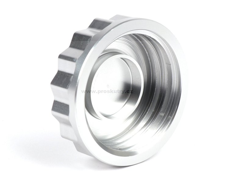 CNC obráběné víčko palivové nádrže v elegantním stříbrném provedení