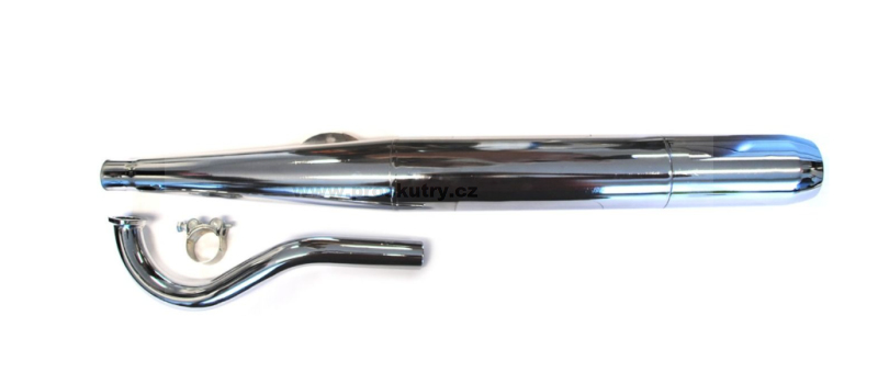 Klasický výfukový systém s 28mm sběrným potrubím a chromovanou svorkou.