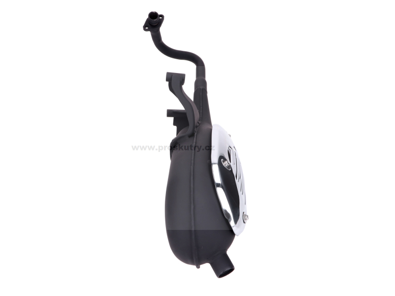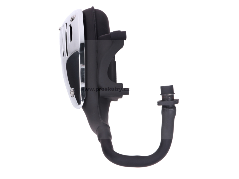 Černý výfuk s chromovaným krytem v originálním vzhledu vhodný pro skútry Aprilia, Piaggio, Vespa s motory 50cc 4T 2ventilový.