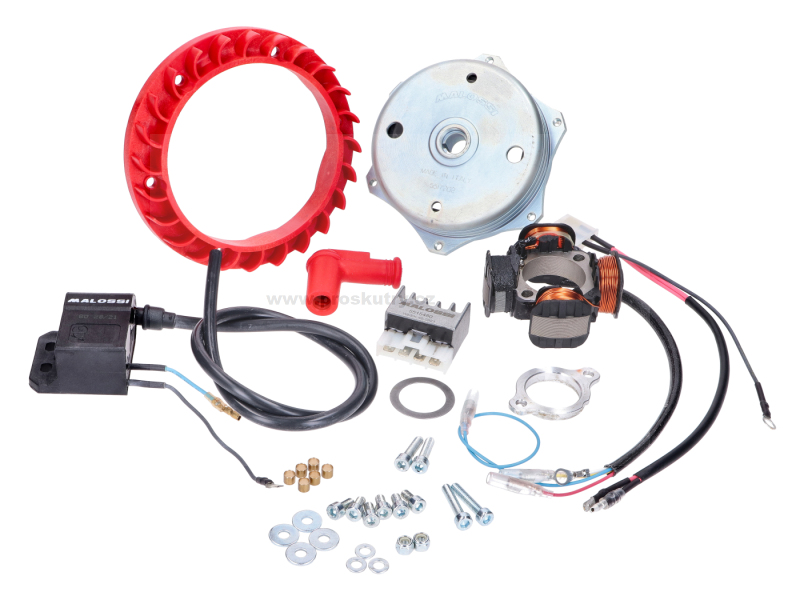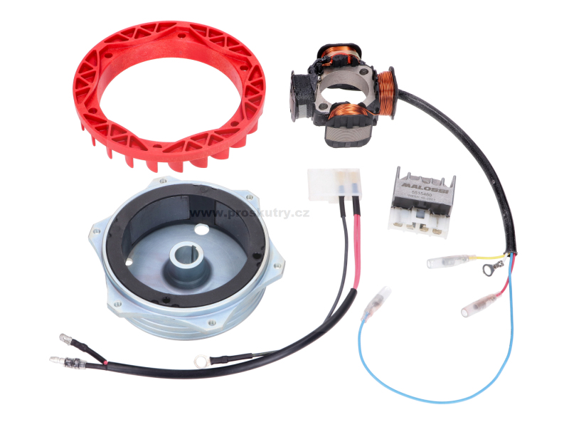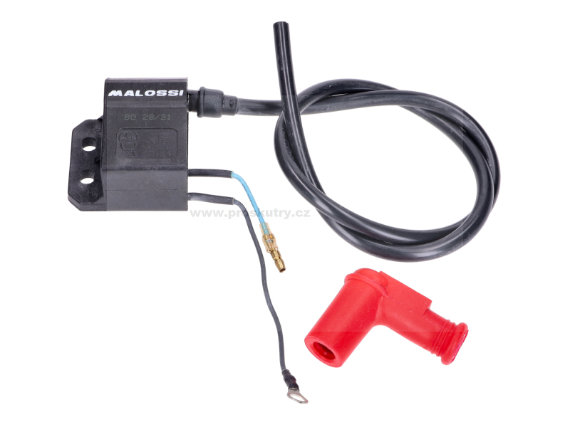 Elektronické zapalování Malossi s výkonem 12V/90W, vhodné pro mopedy Italjet Pack 50 2-takt, Piaggio Bravo, Ciao, Grillo, Si a Superbravo. POZNÁMKA: Pouze pro modely s originálním elektronickým zapalováním!